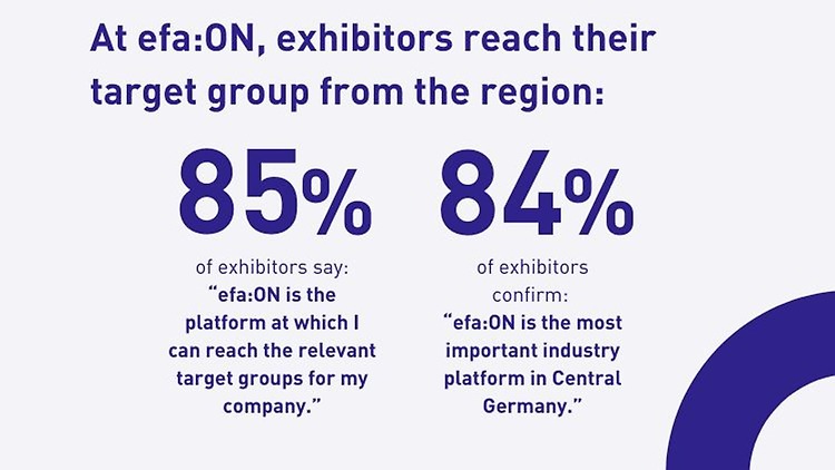 The efa:ON is the only comprehensive trade fair in the region. It is where the latest technologies are presented to an interested specialist audience. Exhibitors at the last trade fair attest to the importance of the event for their business:
